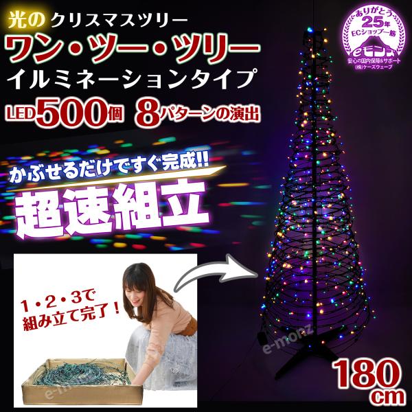 超速組立 クリスマスツリー 【 ワン・ツー・ツリー イルミネーションタイプ 】 180cm LED付 イルミネーションライト 折りたたみ