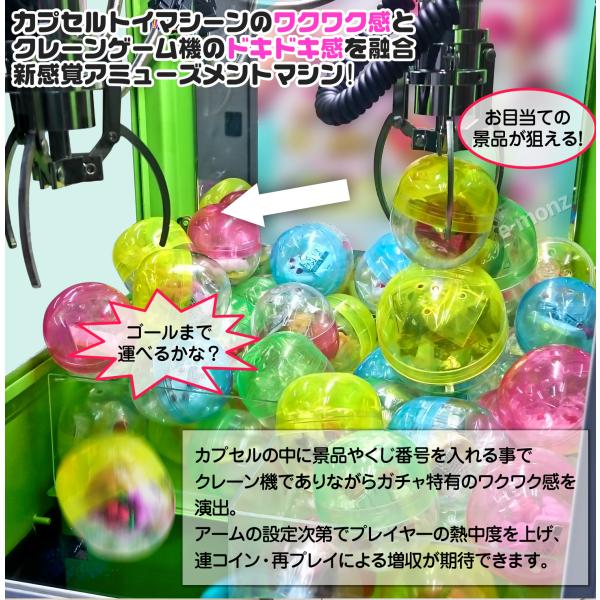 ●世界最小級クラス!横幅30センチのスリム業務用クレーンゲーム機登場!一台で使うもヨシ!カプセルを入れてズラりと並べるのもヨシ!設定も自由自在だから少スペースで利益率アップ間違い無し!お祭りやイベントにも!