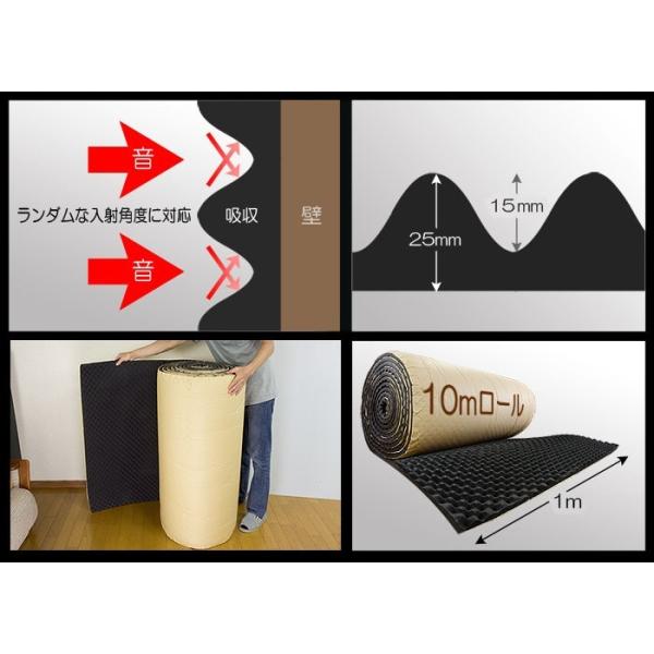 吸音材 【 ロール波型 】 10m×1m×25mm ロールタイプ 波型 耐火 難燃性 ラバーフォーム 粘着テープ 防音シート デッドニング カーオーディオ 制振 振動 壁 車