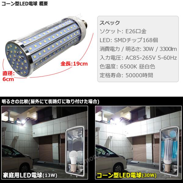 LED 電球 【 高照度 コーン型 LED電球 】 コーンライト 3300LM 30W E26 SMDチップ168個交換用 昼白色 密閉型器具対応 LEDコーンライト コーン型LEDライト