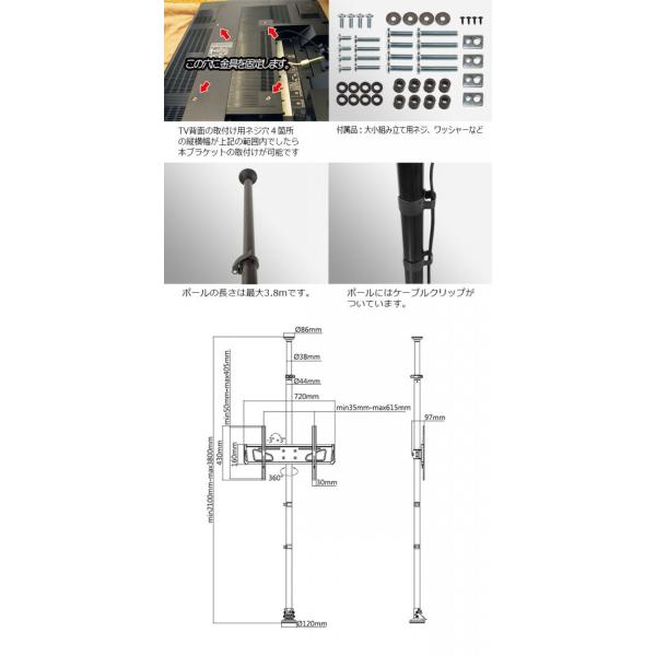 突っ張りポール掛けTVブラケットセット【LP61-46F】