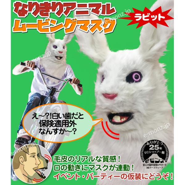 口が動く アニマルムービングマスク 【 rabbit ラビット 】動物 うさぎ アニマルマスク リアル ムービングマスク お面 仮装 コスプレ 着ぐるみ ハロウィン