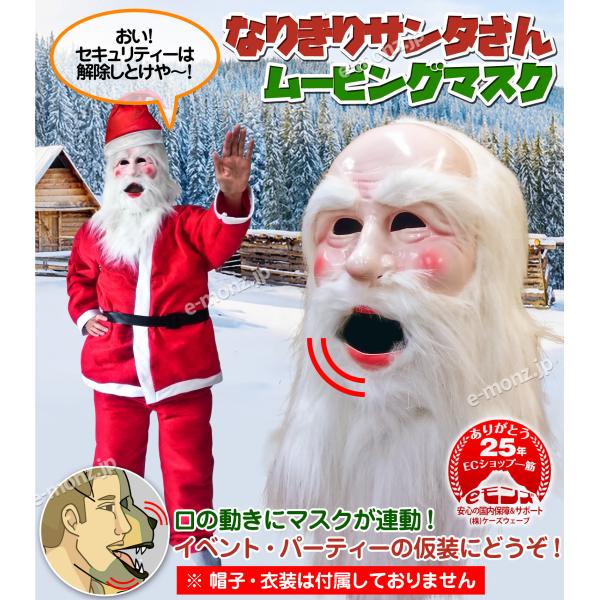 口が動く ムービングマスク 【 サンタさん 】リアル サンタクロース お面 被り物 仮装 コスプレ 着ぐるみ ハロウィン クリスマス イベント パーティー ライブ