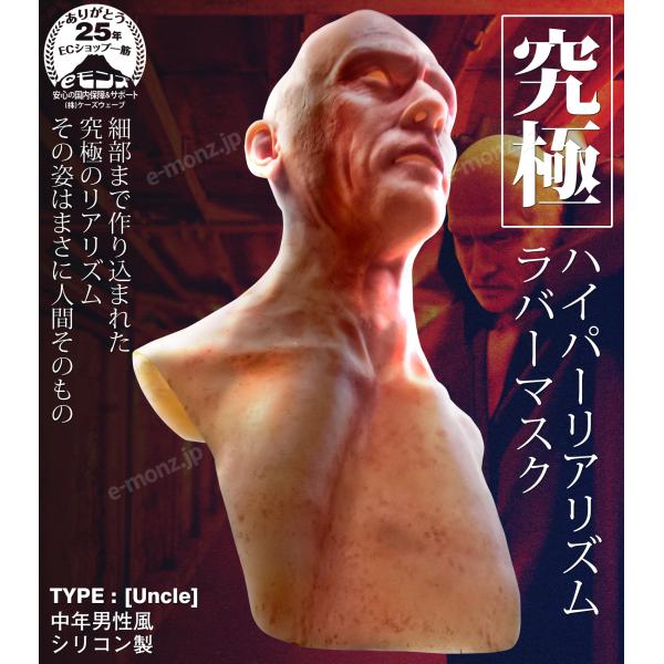 口が動く リアルマスク おじさん 男性 ヒューマン 人間 シリコン ラバー ムービングマスク 【 最高級 リアル変装用 シリコンラバーマスク Uncle 】
