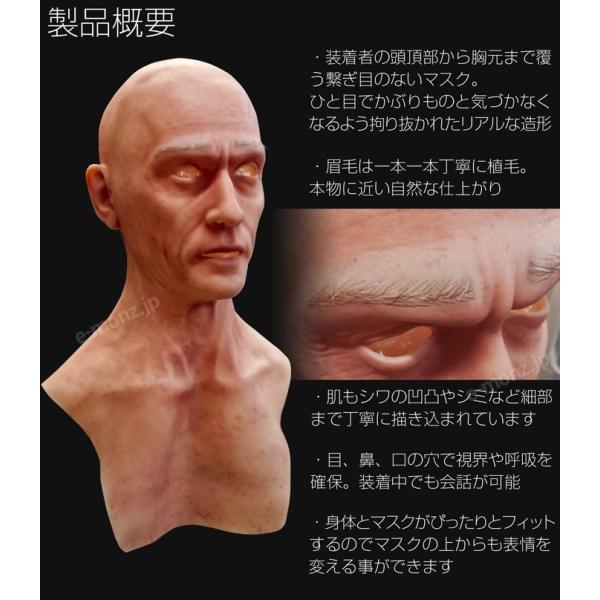 まるで映画「ミッション・インポッシブル」の世界!完全に別人に変装したいと言う願望をも適えられる特殊メイク級の最高級シリコンラバーマスクの登場です。専門職人が一品一品丹念に手作りで仕上げた繊細なディテールはリアルそのもの。演劇や映像製作の現場でも是非お使い下さい。