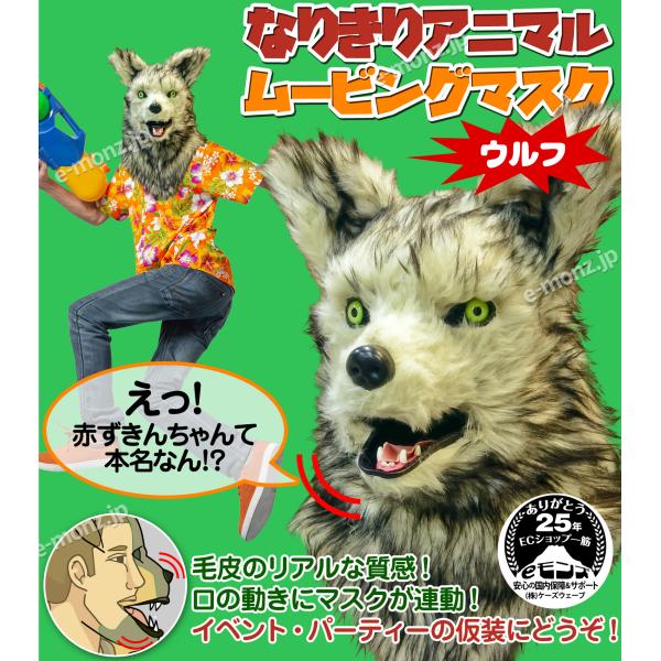 口が動く アニマルムービングマスク 【 wolf ウルフ 】 オオカミ 狼 動物 アニマルマスク リアル ムービングマスク お面 仮装 コスプレ ハロウィン