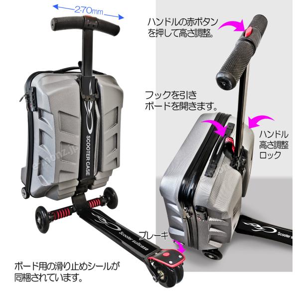 スーツケース キックボード付 【 New スーツケース・スクーター 】 シルバー35L 軽量 静音 PU車輪 カーボン TSAロック 防水 折りたたみ 多機能 キャリーバッグ