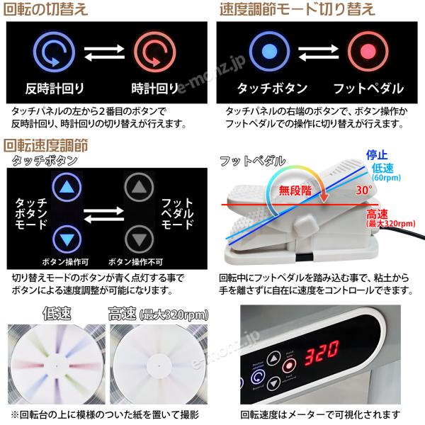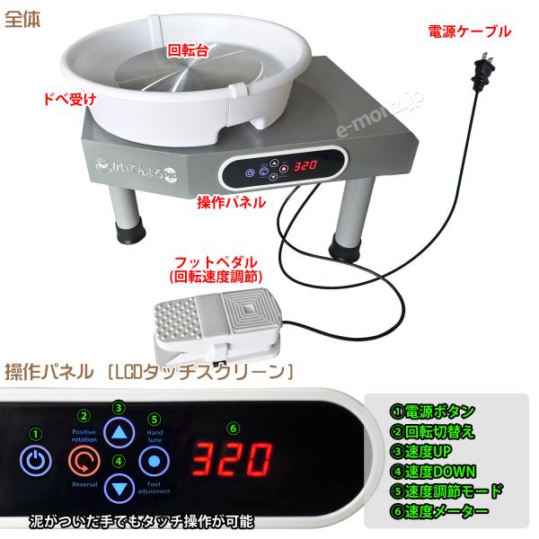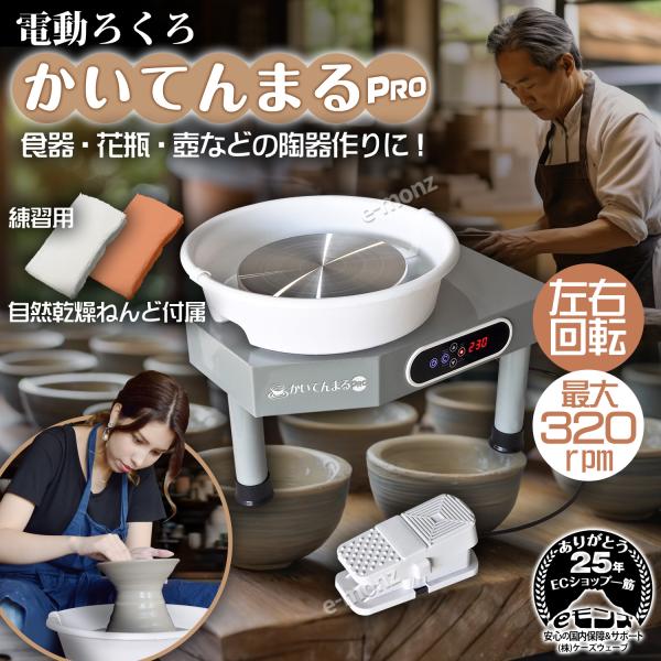 電動ろくろ 【 かいてんまるPRO 】 陶芸 350W タッチパネル フットペダル 成形へらセット 粘土500g×2 回転速度調整 回転切替 業務用