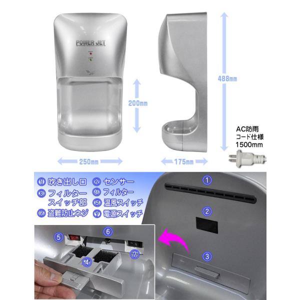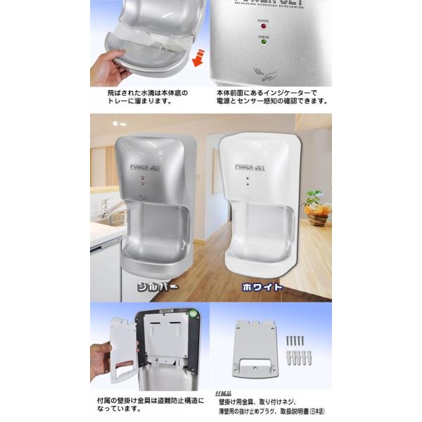 ハンドドライヤー 【 パワージェット PJ-110S 】 [インボイス対応!] シルバー 壁掛け式 小型 業務用 家庭用 ジェット温風 速乾 水受け 盗難防止 エアータオル