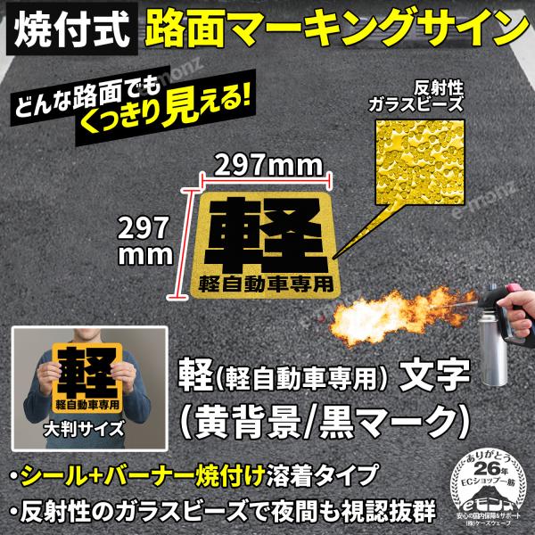 路面標示材 ロードマーキング サイン 【 軽 漢字標示 】(黄・黒) 焼付式 反射材 ガラスビーズ サイン 道路標示 指示 規制 標示 文字 DIY 施工 安全対策