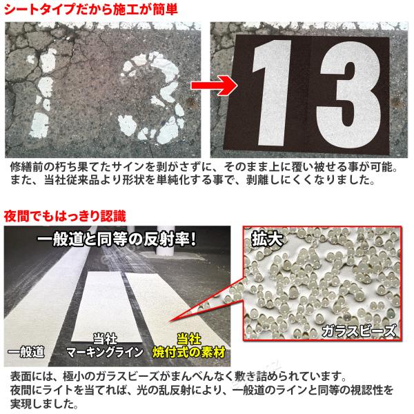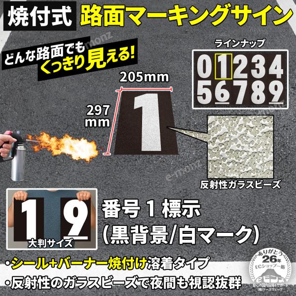 路面標示材 ロードマーキング サイン 【数字1】文字(黒・白) 焼付式 反射材 ガラスビーズ サイン 道路 指示 規制 標示 文字 DIY 施工 安全対策