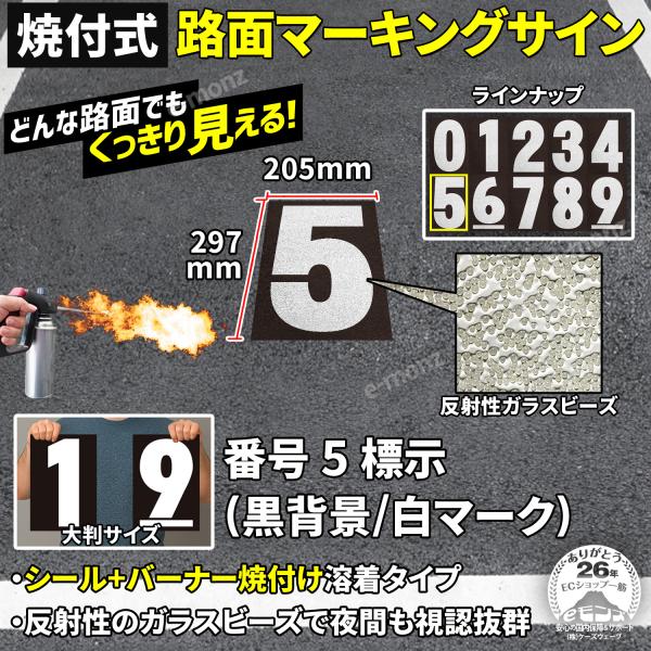 路面標示材 ロードマーキング サイン 【数字5】文字(黒・白) 焼付式 反射材 ガラスビーズ サイン 道路 指示 規制 標示 文字 DIY 施工 安全対策