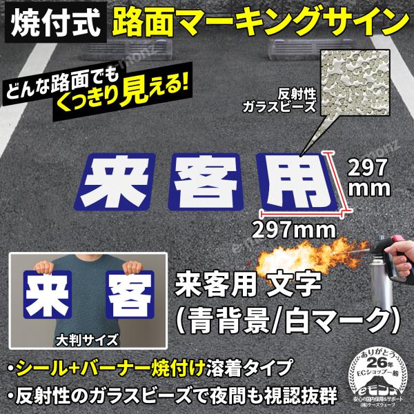 路面標示材 ロードマーキング サイン 【 来客用 漢字標示 】(青・白) 焼付式 反射材 ガラスビーズ サイン 道路標示 指示 規制 標示 文字 DIY 施工 安全対策