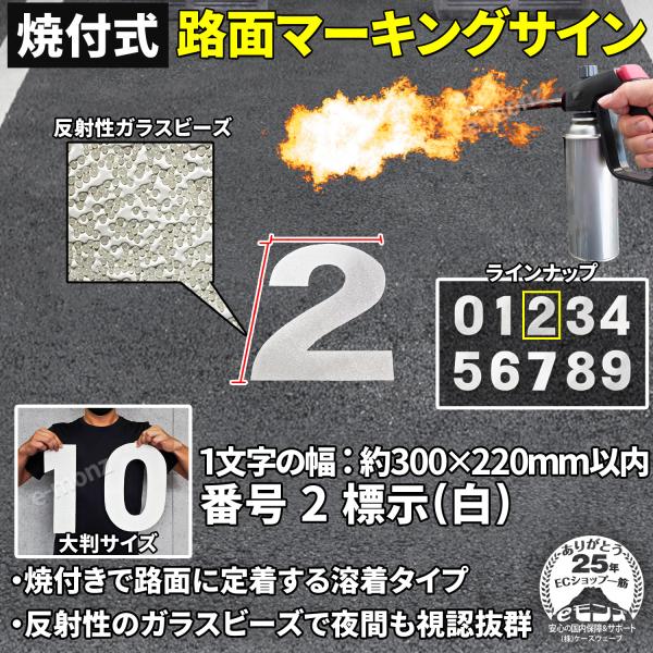 路面標示材 ロードマーキング サイン 【 数字 2 白 】 反射材 焼付式 ガラスビーズ 路面標示 路面サイン DIY 施工 注意喚起 安全対策 おすすめ