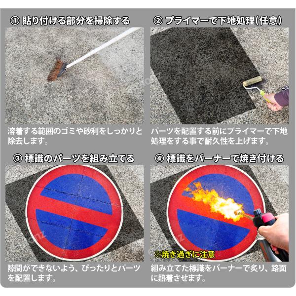 自分で貼れる!路面標識【ロードマーキングサイン】ガスバーナーで焼き付けガッチガチに固まるからで剥がれない!違法駐車に警告!駐車禁止、車両通行止、自転車マーク、止まれ、立入禁止、通り抜け禁止、数字0-9など。