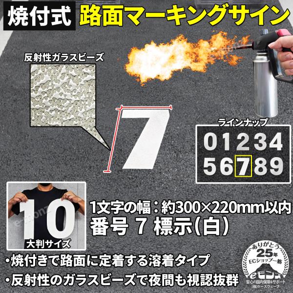 路面標示材 ロードマーキング サイン 【 数字 7 白 】 反射材 焼付式 ガラス ビーズ 路面標示 路面サイン DIY 施工 注意喚起 安全対策 おすすめ