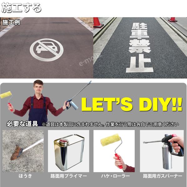 自分で貼れる!路面標識【ロードマーキングサイン】ガスバーナーで焼き付けガッチガチに固まるからで剥がれない!違法駐車に警告!駐車禁止、車両通行止、自転車マーク、止まれ、立入禁止、通り抜け禁止、数字0-9など。