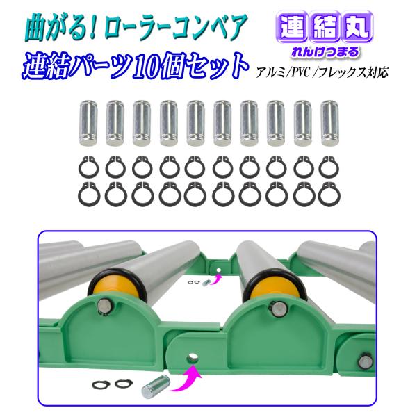 ローラーコンベア 【連結丸 連結パーツ 10個セット】アルミ/PVC/フレックス 対応 連結 レール 防災 救護 救難 工事現場 建設現場 台車 工場 物流 倉庫 荷下