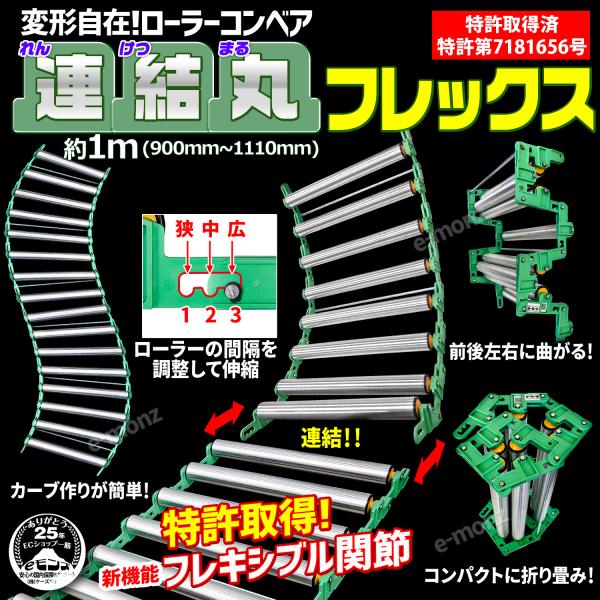 [当社製品保証1年!インボイス対応!] ローラーコンベア 【 連結丸 フレックス 】 特許取得済 アルミ 1m 連結式 ロール収納 カーブ 左右 曲がる 搬送 倉庫