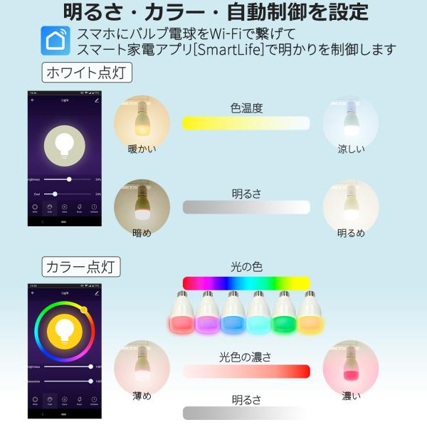 スマートLED電球 Wi-Fi電球 調光調色 E26 Amazon Alexa Google Home Siri スマートスピーカー対応 スマート家電 スマートリモコン ワイヤレス接続 スマート家電 スマートスピーカー AIスピーカー IoT 音声操作 iPhone Android iOS IOT
