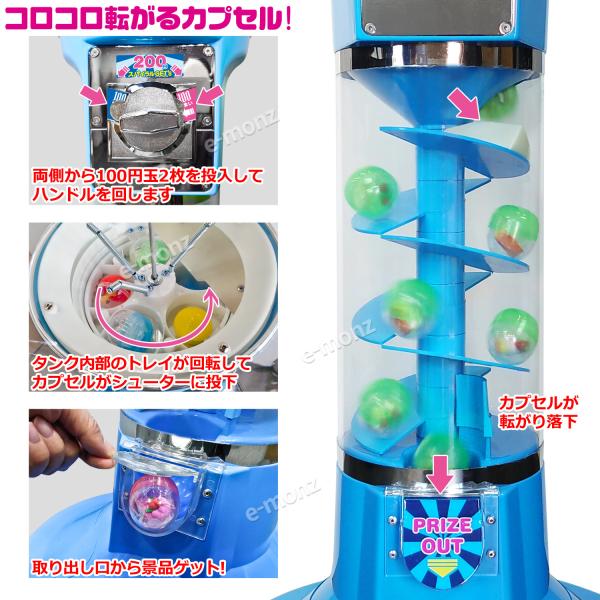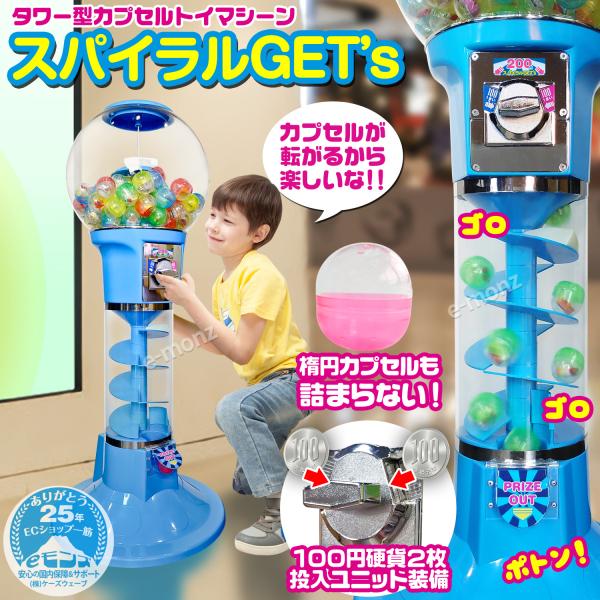 [インボイス対応!] カプセルトイマシン 【スパイラルGET's】 200個 45-55mmカプセル ドーム型 タワー型 回転 カプセルトイマシーン カプセル玩具 カプセルトイ