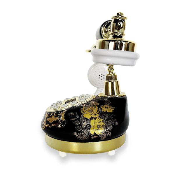 電源不要 固定電話機【セラミック アンティーク型】ブラック 電話機 受話器 アナログ回線 有線 おしゃれ テレフォン IP電話 プッシュホン シンプル
