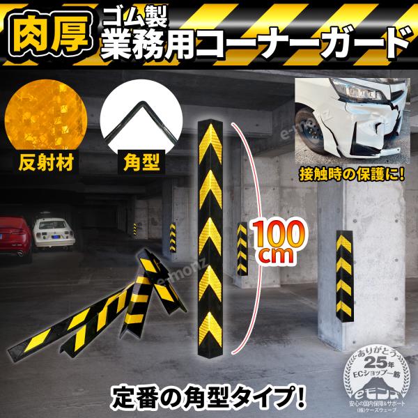 高反射材 L字型 【 肉厚 ゴム製 トラ柄 コーナーガード 角型 】 1.0M 約1620g 業務用 安心クッション コーナークッション ラバーコラム 駐車場 車庫 ガレージ