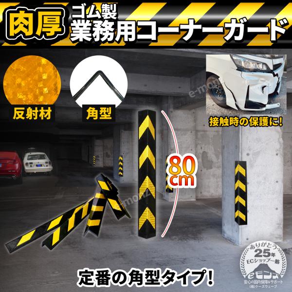 高反射材 L字型 【 肉厚 ゴム製 トラ柄 コーナーガード 角型 】 0.8M 約1400g 業務用 安心クッション コーナークッション ラバーコラム 駐車場 車庫 ガレージ