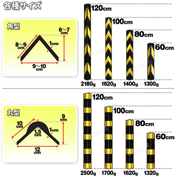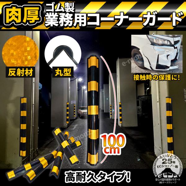 高反射材 L字型 【 肉厚 ゴム製 トラ柄 コーナーガード 丸型 】 1.0M 約1700g 業務用 安心クッション コーナークッション ラバーコラム 駐車場 車庫 ガレージ