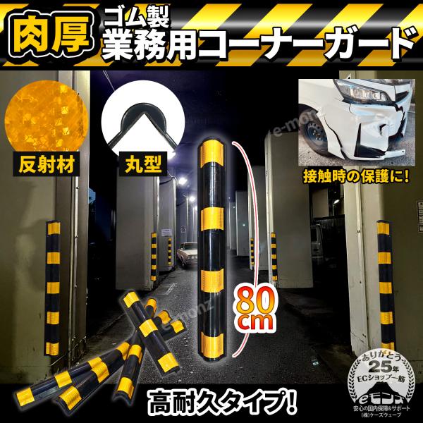 高反射材 L字型 【 肉厚 ゴム製 トラ柄 コーナーガード 丸型 】 0.8M 約1620g 業務用 安心クッション コーナークッション ラバーコラム 駐車場 車庫 ガレージ