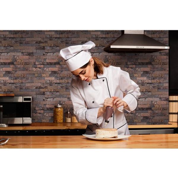 本物のレンガと錯覚する程に質感と立体感を模したフェイク壁紙。