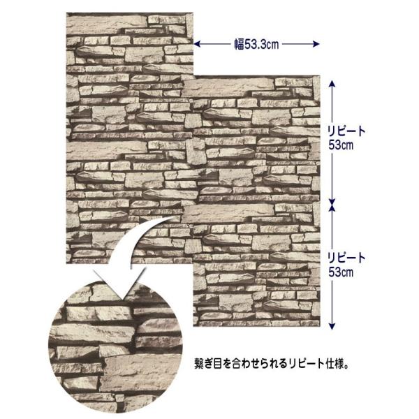 高級輸入壁紙 石積み 53cm×10m リメイクシート 【レンガ・タイルシリーズ SE452001】 石目 壁用 レンガ タイル リメイク ウォールステッカー