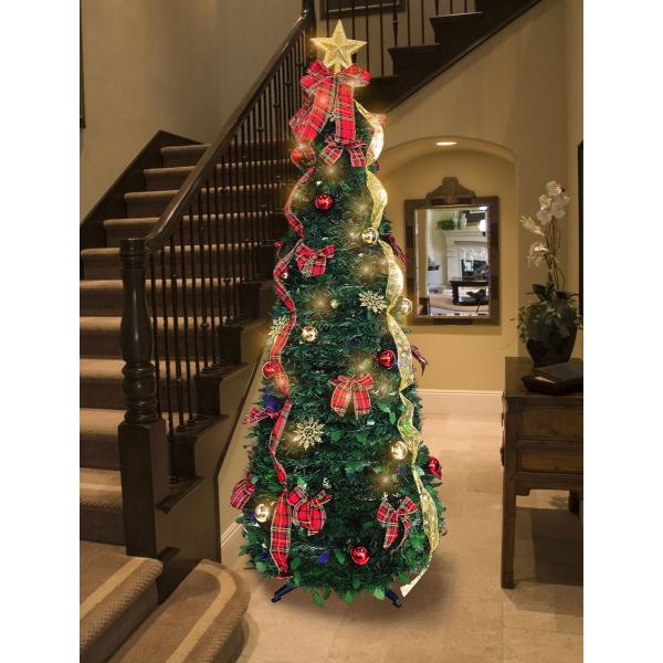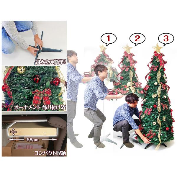 超速組立 クリスマスツリー 【 ワン・ツー・ツリー レッドリボンタイプ 】 180cm オーナメント 折りたたみ ポップアップツリー