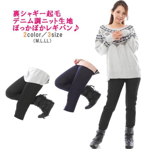 裏起毛レギンス デニム調 暖かい裏起毛パンツ 裏起毛 レギパン レディース 極暖 起毛 暖 裏シャギー ブラック ネイビー デニム M L LL