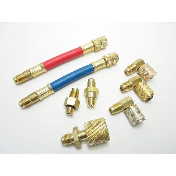 エアコンガスチャージ 接続 アダプター 細口 エルボ アダプターセット8種類 ◆ R12 R22 R134a R502等に