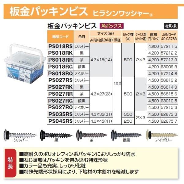 板金 パッキン ビス ヒラシンワッシャー 4.3×27 ねじ部23mm 各色 若井産業