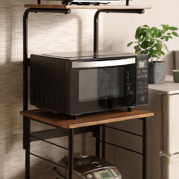 キッチン家電や小物などをまとめて収納できる、キャスター付きレンジワゴンです。木目をリアルに再現したPVCを使用し、スチールフレームを組み合わせたヴィンテージ風デザインになっております。シンプルながら機能をしっかり充実させました。キャスター付きなので裏や隙間に落ちた床の掃除も楽に行えます。