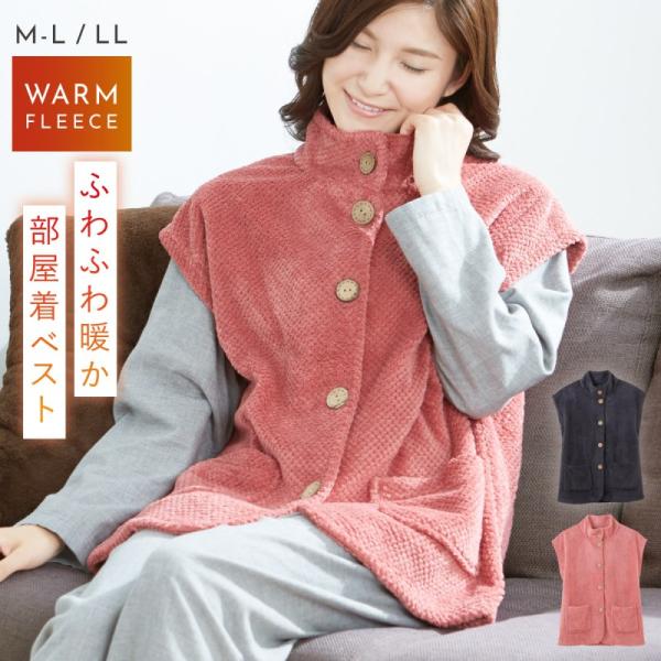 ベスト あったか ボア 上着 パジャマの上 冬 ルームウェア フリース 防寒 おしゃれ 肩まであったかチュニック丈ホームベスト レディース LL 大きいサイズ シニア