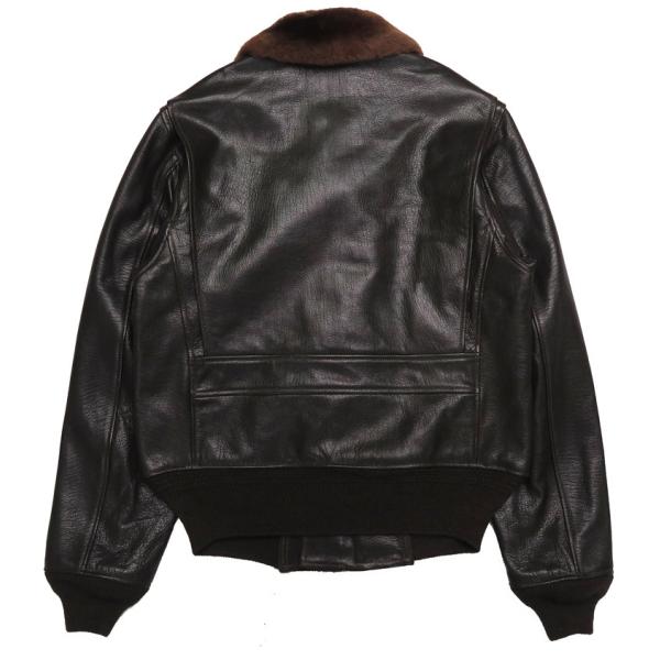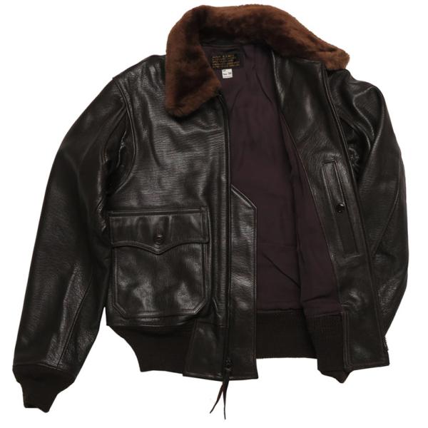 海軍航空局が1940年代末期から採用したスペック55-J-14はG-1と呼称された最初のジャケットである。55-J-14は1948年から1951年の間に11度もの納入契約が交わされた。M-422から始まったデザインは陸海共同のAN6552、AN-J-3Aを経て標準化された一連のジャケットでその外観やディティールは基本的には大きく変わっていない。これは当初から採用されたデザインやディティールがいかに完成度が高いものであるかを裏付けている。また化学繊維が主流となったフライトジャケットの中にあって現在でも支給されているG-1は最も息の長いレザーフライトジャケットであり、同時に米海軍の誇りを表している。このG-1は1951年の同時期に空軍のB-15Cも製造納入していたA.PRITZKER & SONS社が手掛けたモデル。メインラベルにはサイズ表記が無く、サイズチケットを差し込む仕様。フルベジタブルタンニングで鞣された革は固く縮まりがちだが、それを柔軟性のある繊維質をもつゴートスキンが解消してくれる。