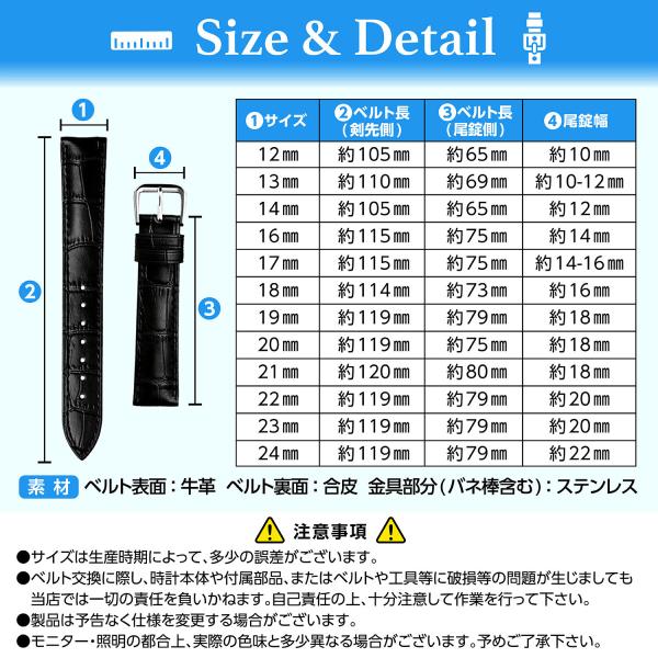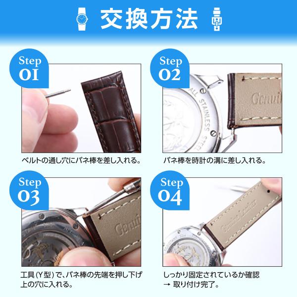 腕時計 ベルト 交換 工具 バネ棒付 14mm 16mm 18mm 20mm 22mm 牛革 クロコエンボス