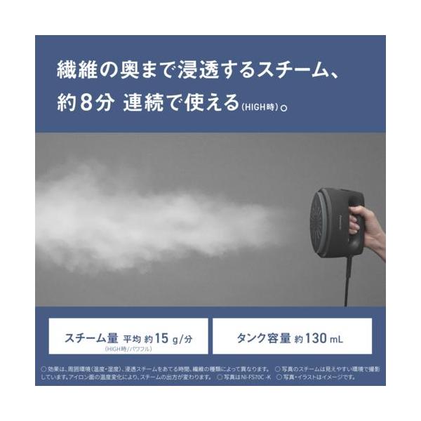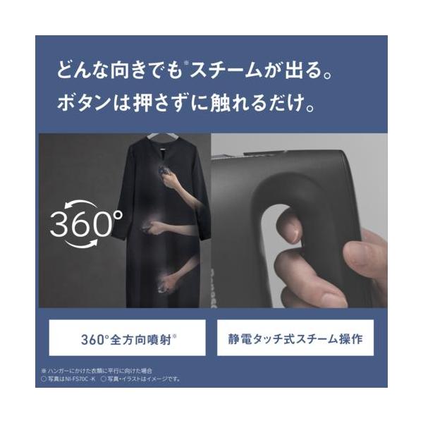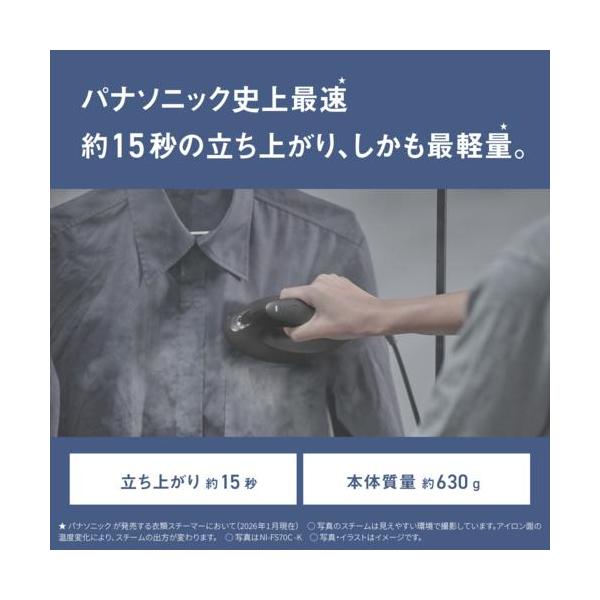 パナソニック(Panasonic) NI-FS70C-K カームブラック 衣類スチーマー 浸透スチーム 静電タッチ式スチーム操作 自動ヒーターオフ 軽量