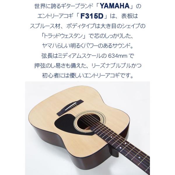 ヤマハ アコースティックギター YAMAHA F315D アコギ スタート6点セット 【チューナー/ストラップ/ピック2枚/コードシート】 【98765】