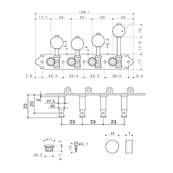 GOTOH製マンドリン用のペグです。ブッシュとネジが付属でついたセットとなります。