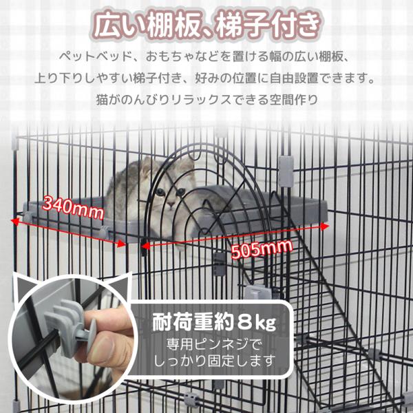 ♪【広々スペース】多頭飼いにも対応できる3段タイプキャットケージです。位置を自由に設置できる広々とした棚板が3枚付き、ベッドや玩具なども置けるので、猫ちゃんが中でのんびりリラックスできます。※猫ちゃんがケージに慣れない場合は猫のお気に入り物を入れるのがおすすめです。