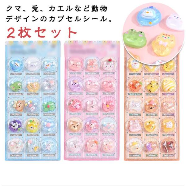 デコシール カプセルシール ぶっくり シール おはじきシール 小学生 マシュマロシール 動物 アニマル ウサギ つやつや 2枚入り 子供 3D 女の子