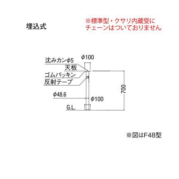 ■柱の太さ:Φ48.6 ■高さ:700mm ■仕様:埋込式(キー付き) オプションポール(取替用) 標準型 ■材質:ステンレス