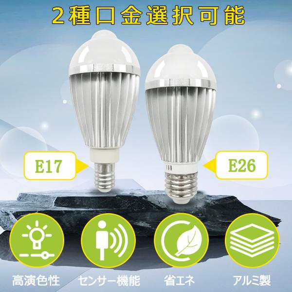 LED電球 E17 E26 人感センサー付き 消費電力7W 40W相当 防犯夜灯
