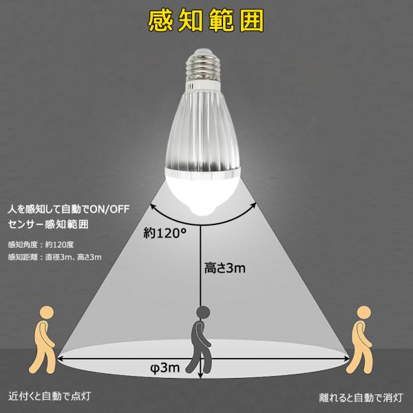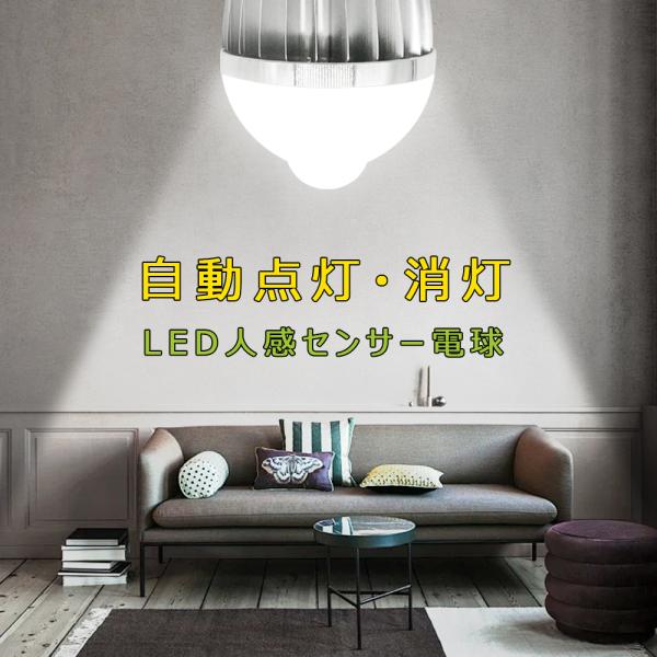 人感センサー電球 E26 E17 40W形 人感ライト 自動点灯 自動消灯 防犯夜灯 昼光色 電球色 玄関 廊下 階段 洗面所 脱衣室 台所