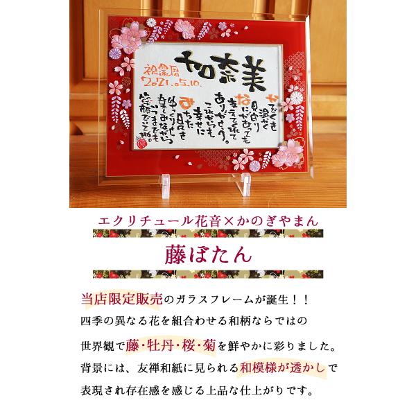 退職祝い 古希祝い 還暦祝い 誕生日 プレゼント 当店限定フレーム藤ぼたん 名前詩 和紙 1名用 名前詩 名前ポエム 喜寿 定年 60歳 和柄 ガラスフレーム