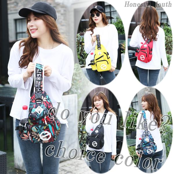 【きれいめデザイン】 ブラック・イエロー・レッド・Flower(A)・Flower(B)の5色展開なので、大人から子供、レディース・メンズとTPOに合わせて自由に選ぶことができるボディーバッグです。